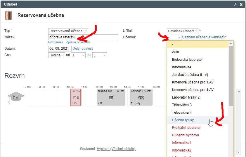 - Pro učitele: Rezervace učebny