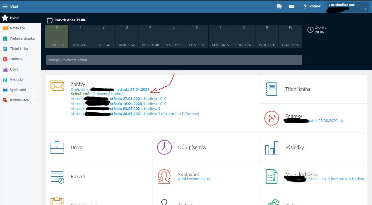 - Pro studenty a rodiče: Omluvenky a vše ostatní