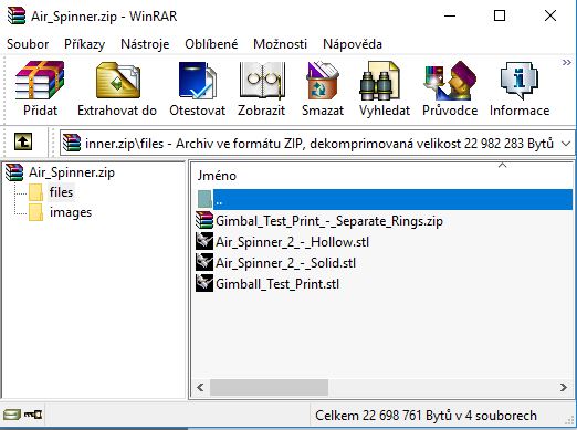 …klikneme na „Download all files“ a stáne se nám soubor .ZIP obsahující popis, možná i nějaké obrázky a jeden či několik souborů .STL: