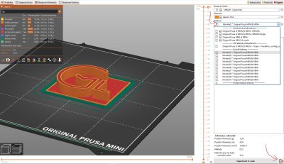V korektní konfiguraci Prusa Sliceru jsou rovnou připraveny pro přímý tisk i tiskárny Mirka01 a Mirka02. Postupujte stejně jako v případě Miniček v předchozím odstavci.