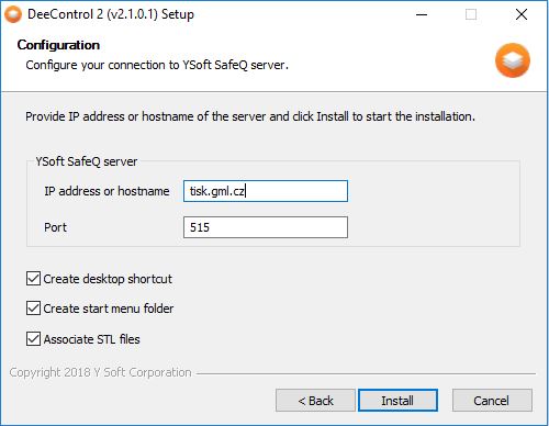 Instalace staršího DeeControl je podobná, pouze se instalátor na IP adresu či jméno serveru neptá, ale musíte je v programu po prvním spuštění nastavit (volbou Nastavení - Nastavení SafeQ).