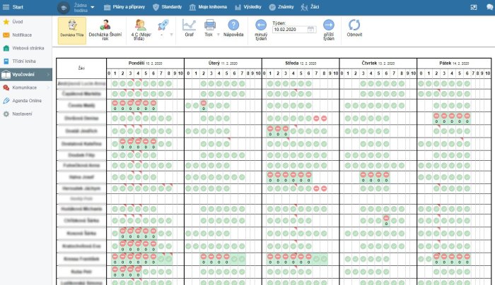 Zobrazí se velký panel, v něm lze nahoře přepínat mezi tlačítky (zobrazujícím celotřídní týdenní přehled) a