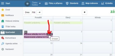 Povšimněte si ještě, že vedle křížku (pro smazání) je i pero (pro editaci, pokud bychom chtěli jinou učebnu, více učeben, méně učeben, atp.)