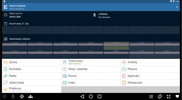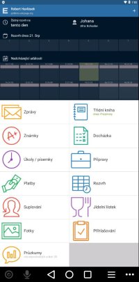 Spustíme aplikaci Edupage na svém mobilu/tabletu (pokud ji nemáme, viz nejprve Aplikace pro mobil: instalace, přístup ke svým osobním informacím). V mobilu otočeném na vysoko vidíme: