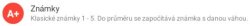 Do jednoho políčka lze zadat víc známek oddělených čárkami, každá má pak stejnou váhu. Známky lze zadávat i desetinným číslem (s anglickým zápisem, tedy pomocí tečky). Značka - za známkou znamená přidání 0.3, značka + za známkou znamená odebrání 0.3 z její hodnoty. Například:
