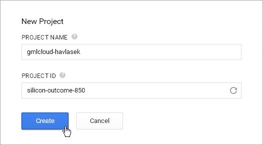 - Kliknete na tlačítko „Create project“. Vyplňte jednoznačné „Project name“, například „gmlcloud-havlasek“, záleží na vás. Systém vám níže vygeneruje jednoznačné Project ID (nebudete jej potřebovat):