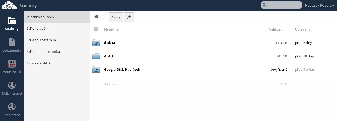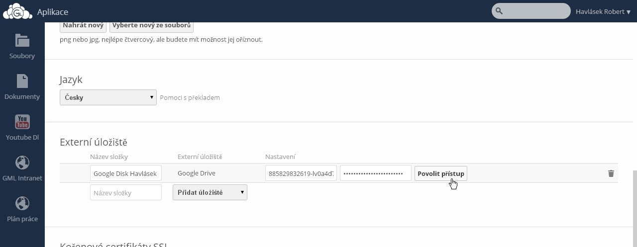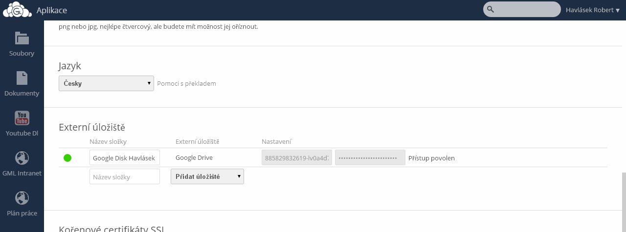 Připojení GoogleDisku do gmlCloudu (do http://www.gml.cz/soubory)
