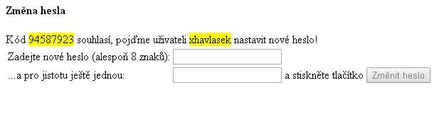 Nějaké heslo si vyplňte a stiskněte tlačítko Změnit heslo.