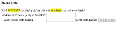 Můžete buď přímo kliknout na odkaz v e-mailu nebo si zkopírovat/zapamatovat kód, přehodit záložku (CTRL+TAB) zpět na heslový formulář a do žlutého pole kód vložit/napsat.