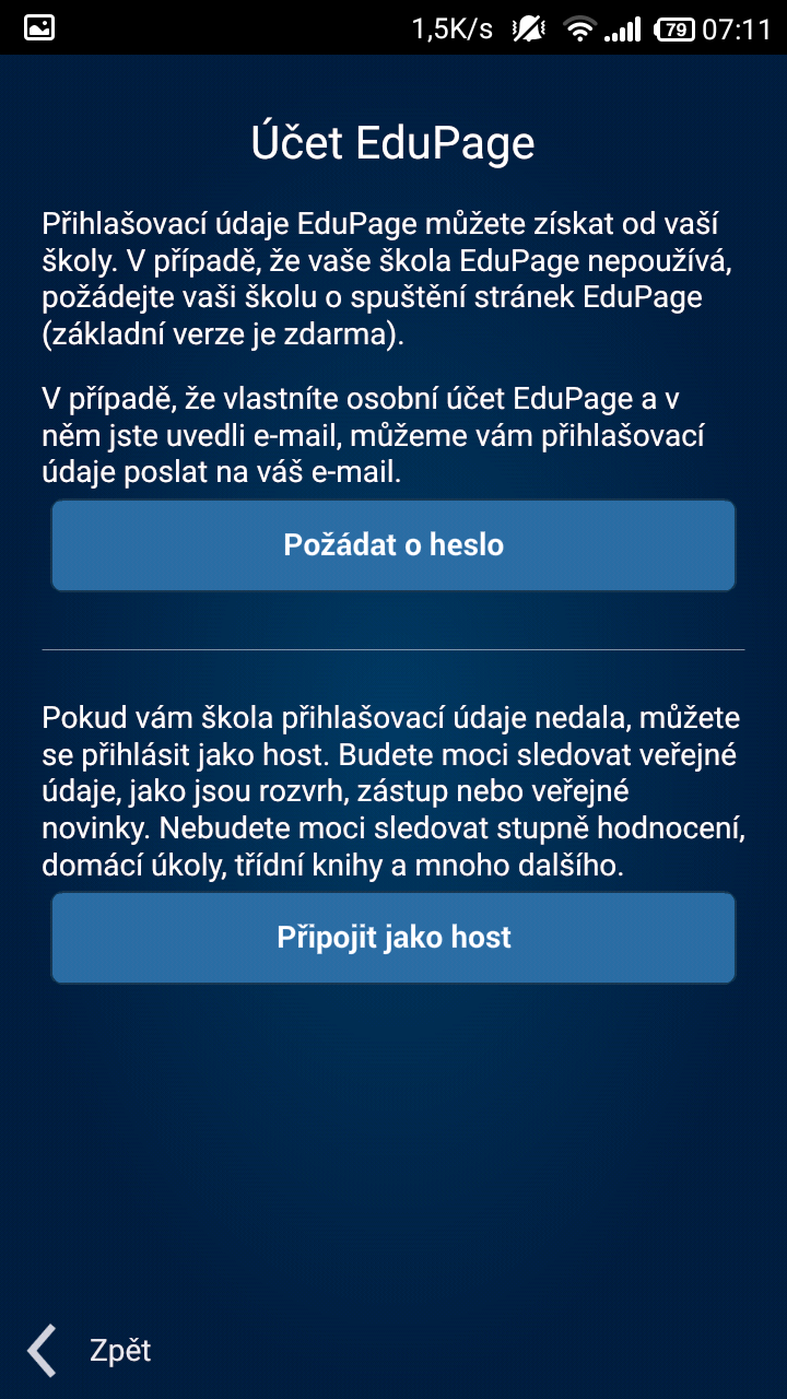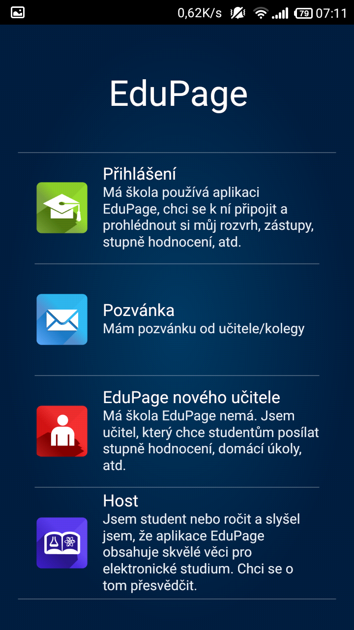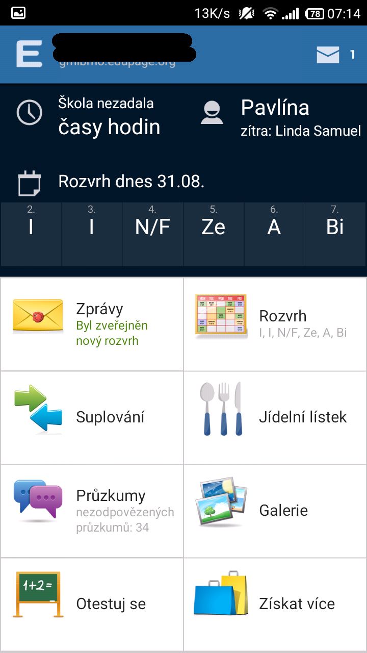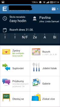 Po zvolení mojí identity se zobrazí úvodní stránka, která nás bude vítat vždy po zapnutí aplikace EduPage: