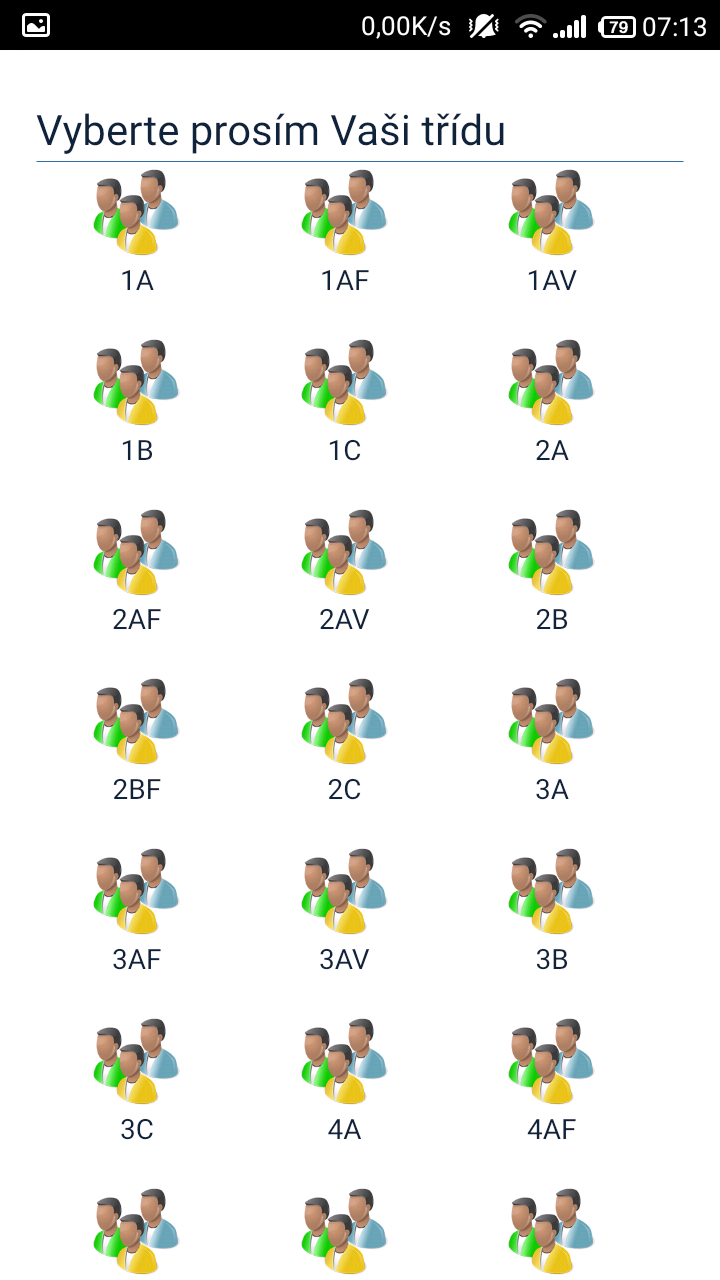 Po kliknutí na Vytvořit účet následuje volba třídy: