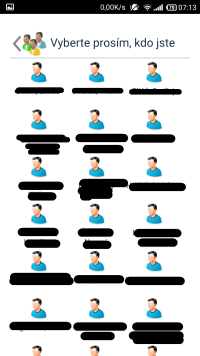 Prstem lze rolovat dolů/nahoru, po kliknutí na svoji třídu následuje volba, kdo jsem: