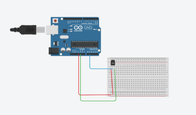 Jelikož se jedná o digitální teploměr, zapojuje se do digitálního vstupu arduina. Také nožičky mají jiné uspořádání. Při pohledu zespoda je vpravo zemění a vlevo napětí, tedy přesně obráceně než u analogového teploměru. Při zapojení musíme přidat rezistor, jelikož to čidlo vyžaduje, aby se nespálilo. Rezistor se připojuje mezi napětí a data, a jeho hodnota je 10kΩ.