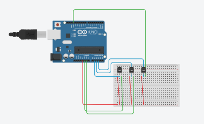 Čidla připojuji každe samostatně. Všechny musí mít zdroj napětí a být uzeměné. Výstup dat je potom rozdělen do 3 odlišných vstupů arduina. Například A1, A2, A3. Získávání dat pak musím rozdělit. Arduino zvládne komunikovat se všemi třemi čidli po jedné lince, ovšem né zároveň, a proto je nutné rozdělit sběr dat. Nejprve komunikuje s prvním, poté s druhým a nakonec s třetím, toto záleží na nás. Místo funkce analogRead(sensorPin); píšeme analogRead(A1);… abychom dokázali oddělit sběr dat a získat tak 3 naměřené hodnoty. Díky zapojení tří čidel můžeme tedy dosáhnout většího množství výsledků, a tudíž i větší přesnosti při výpočtu aritmetického průměru.